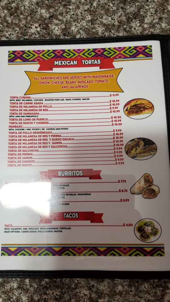 Egg torta comes with mayonnaise, onion, cheese, beans, avocado, tomato and jalapenos.